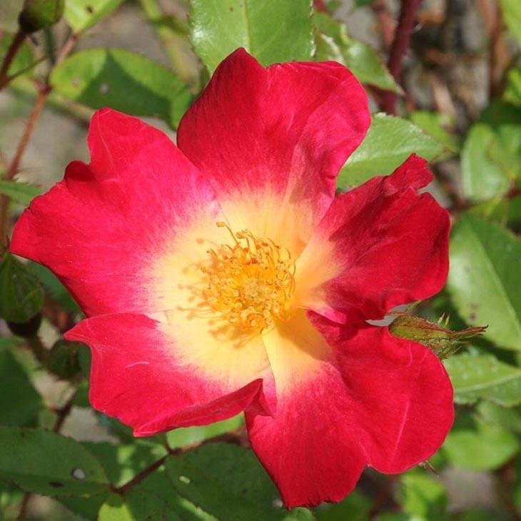 つるバラをフェンスにはわせると風景が一変します。 殺風景だった庭や窓べ、玄関も憧れのお家に変身します。 どうやったか?知りたいところですよね。 バラをフェンス仕立てにする方法、資材選び、費用、 設置に関するあらゆることを余すことなく紹介します。カクテル(コクテール) – Cocktail 一重の赤つるばらを代表する品種で、緋色に中心黄色の華やかな色彩を持ち、返り咲きも多く現在も多くの人に愛されています。 花付き素晴らしく壁面仕立てがやはり見事です。 枝質・葉質が若干弱く、寒冷地では
